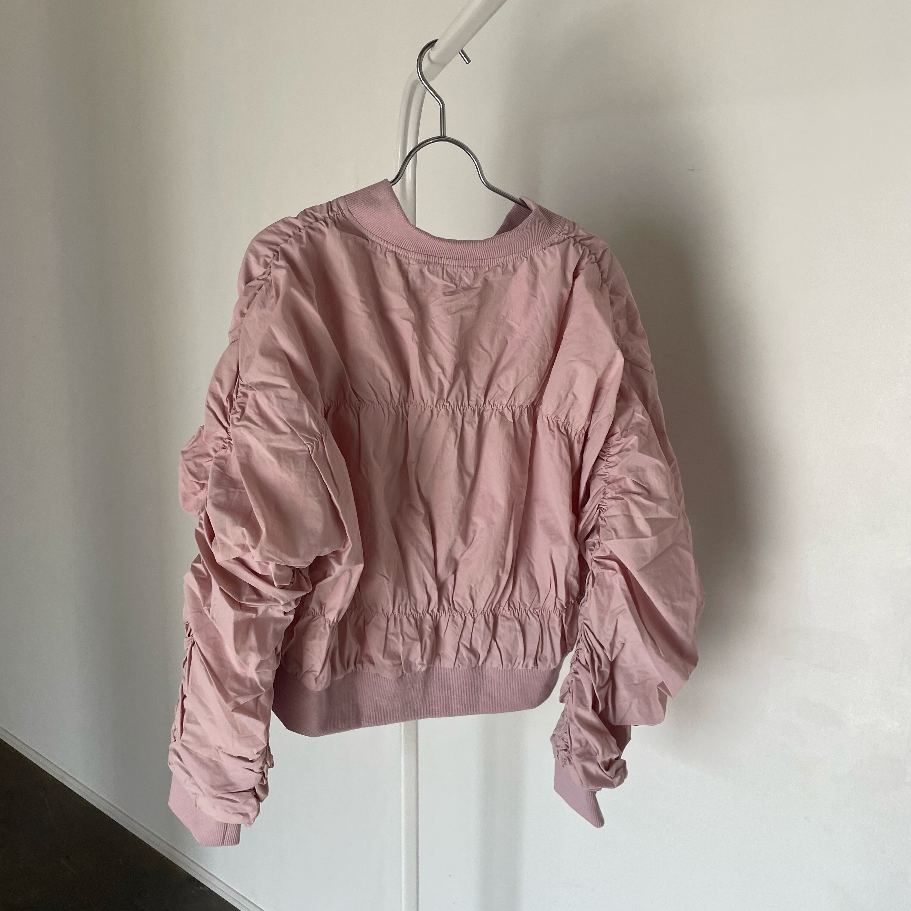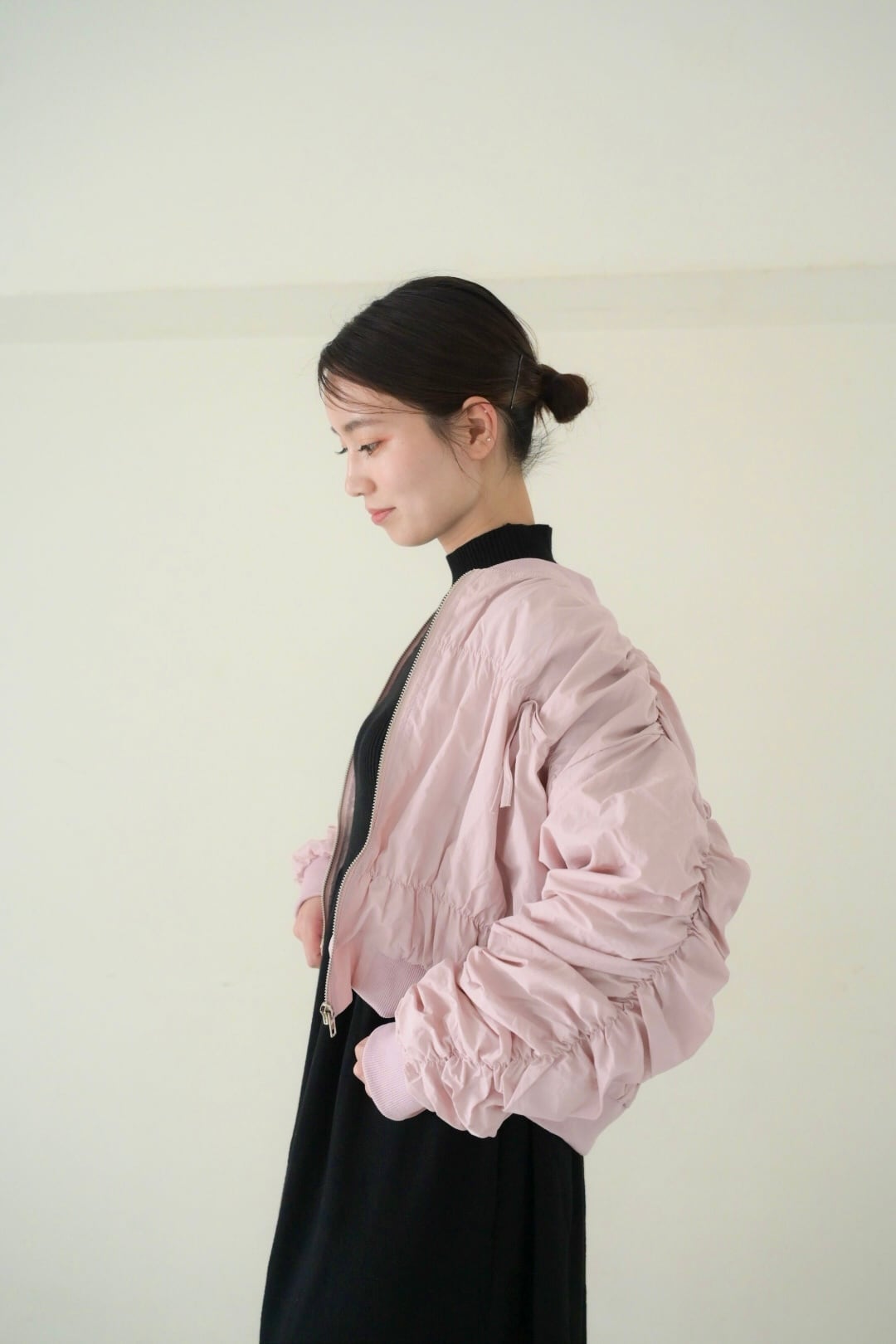 メンズライクなMA-1にリボンをあしらい女性らしさをプラス。ハリのある生地で立体感がありシワになりにくい1枚です。