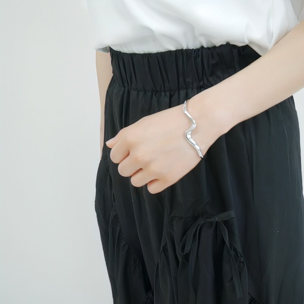 ニュアンス感のあるウェーブラインバングルブレスレット。洗練されたシンプルさが、コーデやシーンを選ばず日常にマッチ。素材は金属アレルギー対応のサージカルステンレスで、耐久性にも優れています。