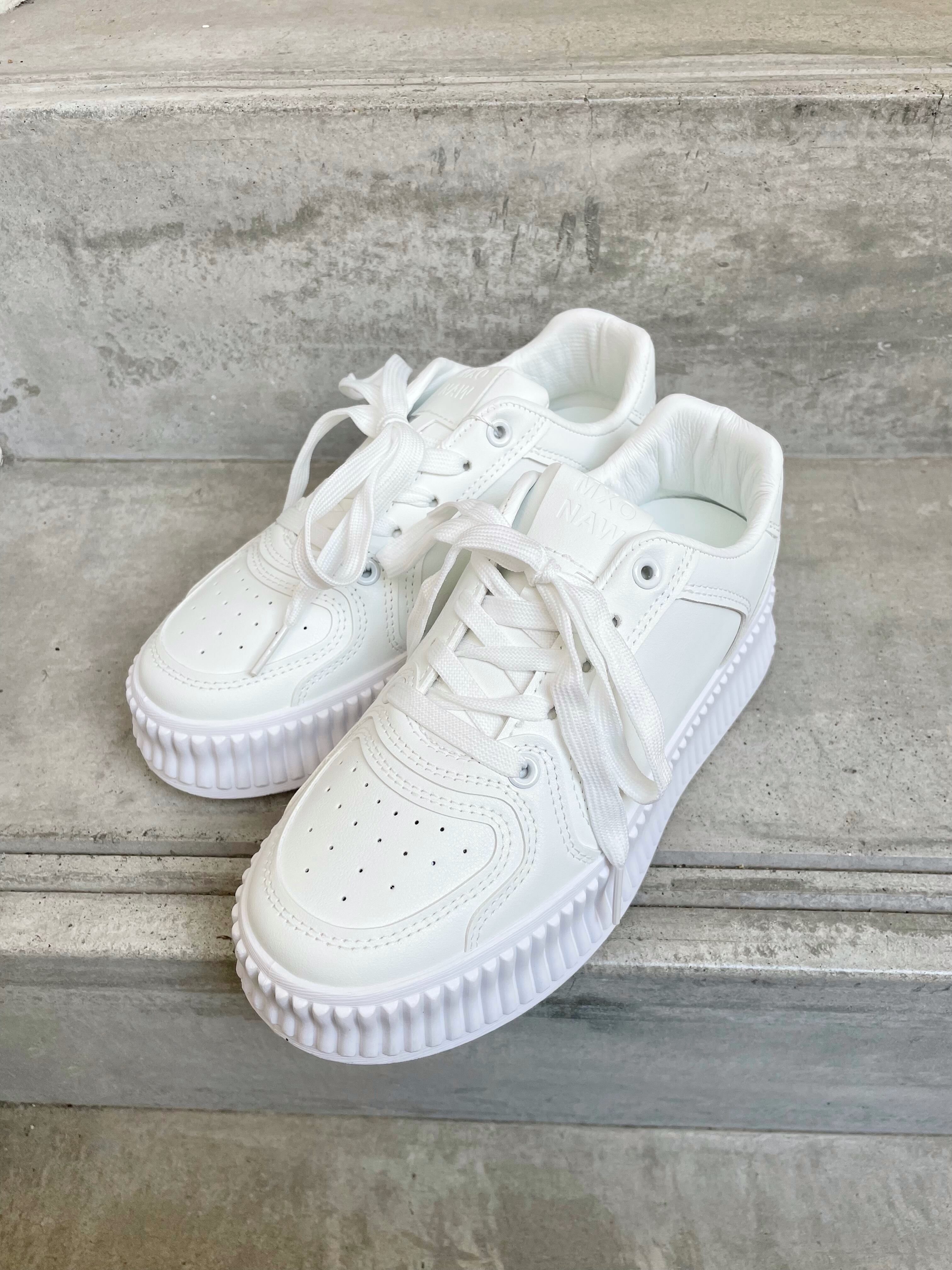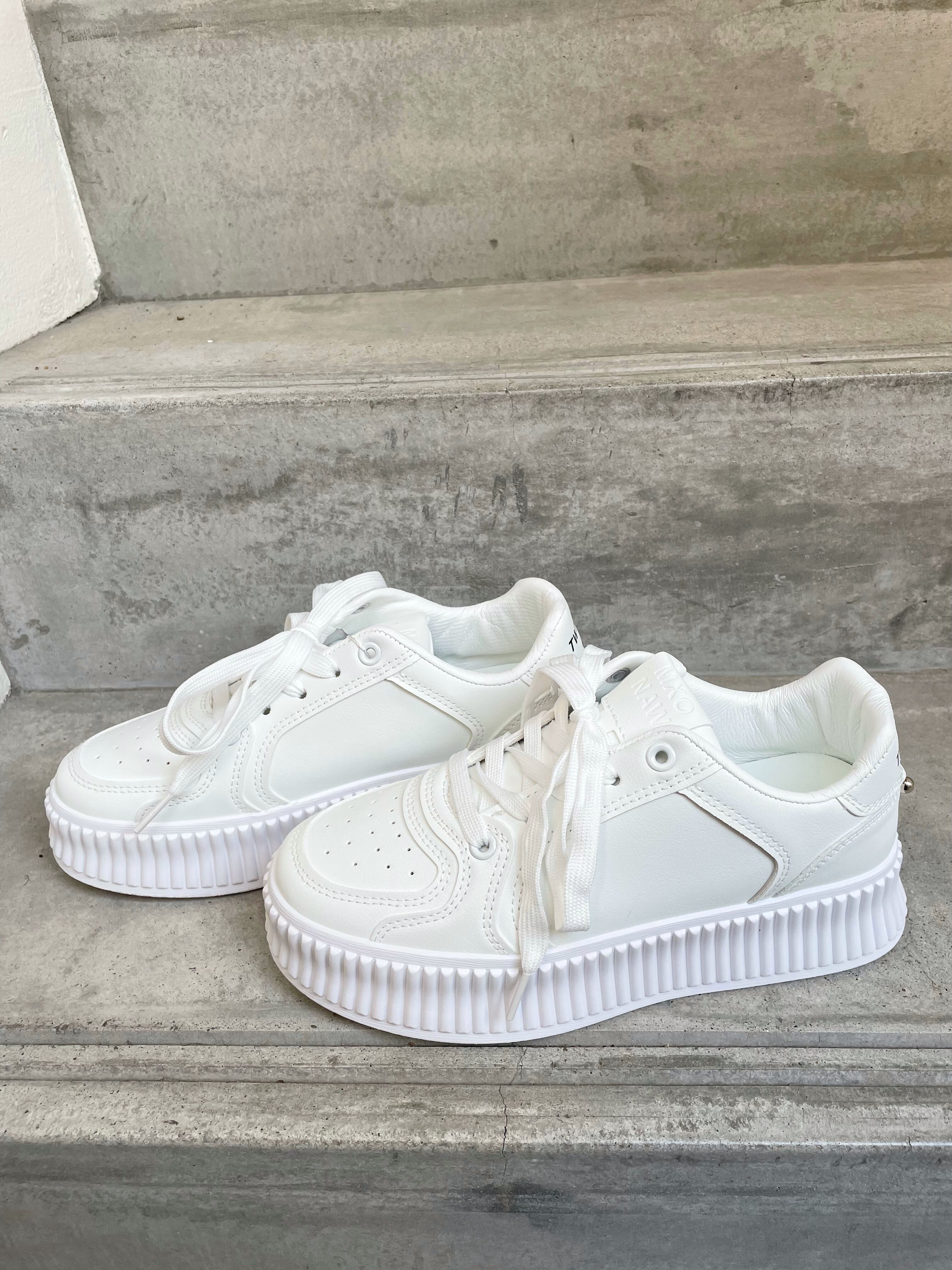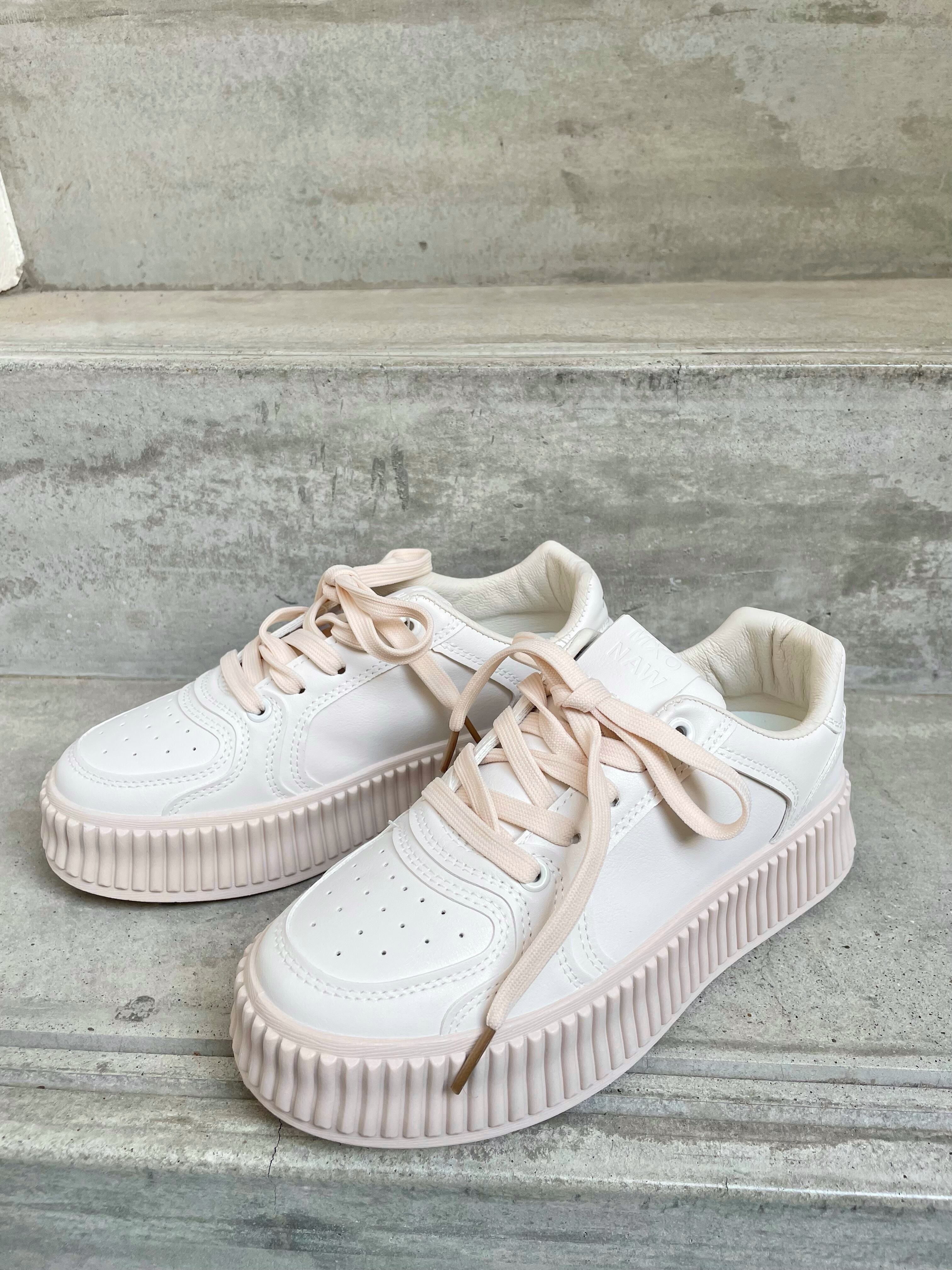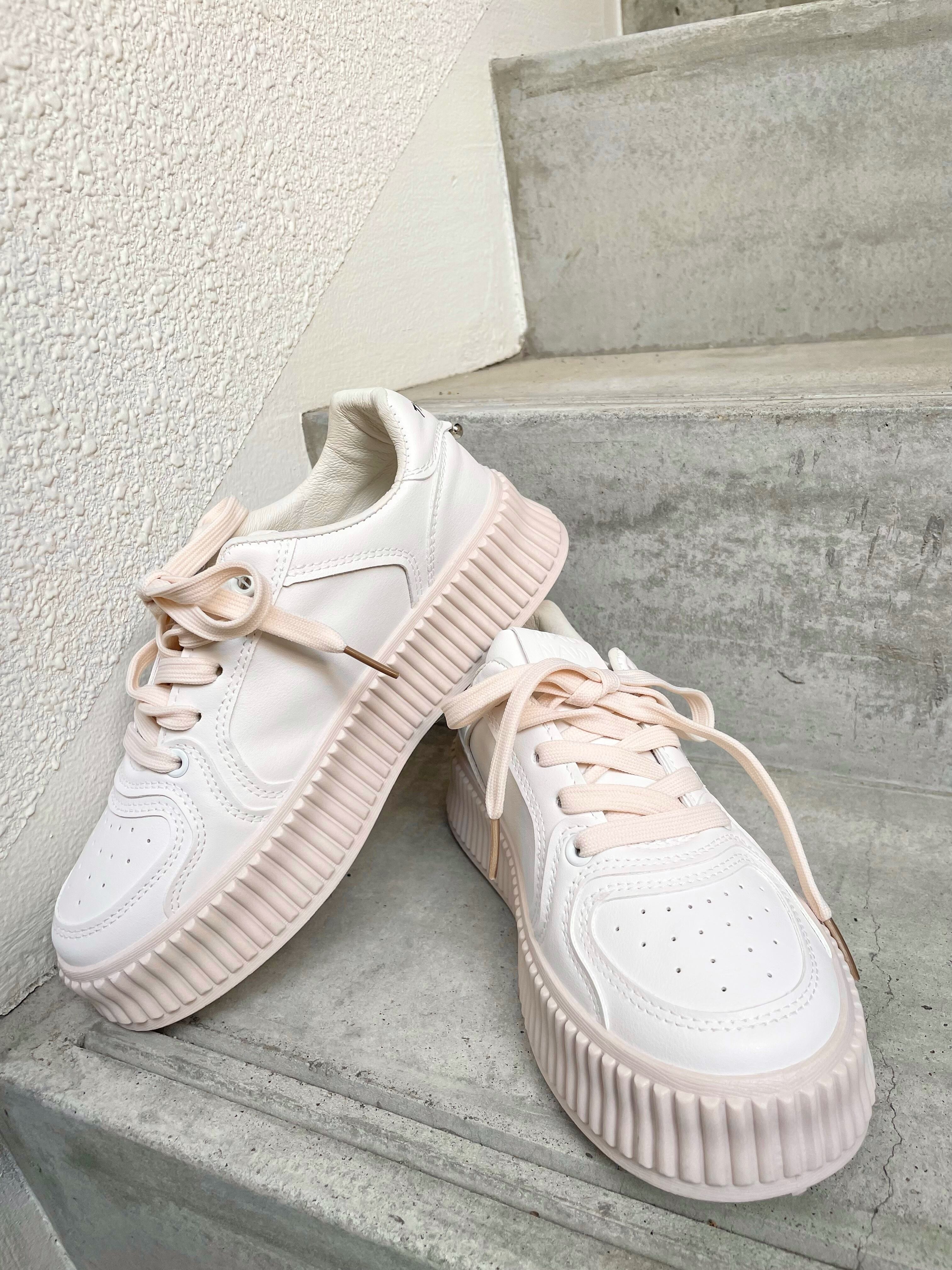 フェミニンにもカジュアルにも幅広く合わせられる万能スニーカー。ロング丈のワンピースやボトムス合わせもスタイルアップが狙えオススメです。