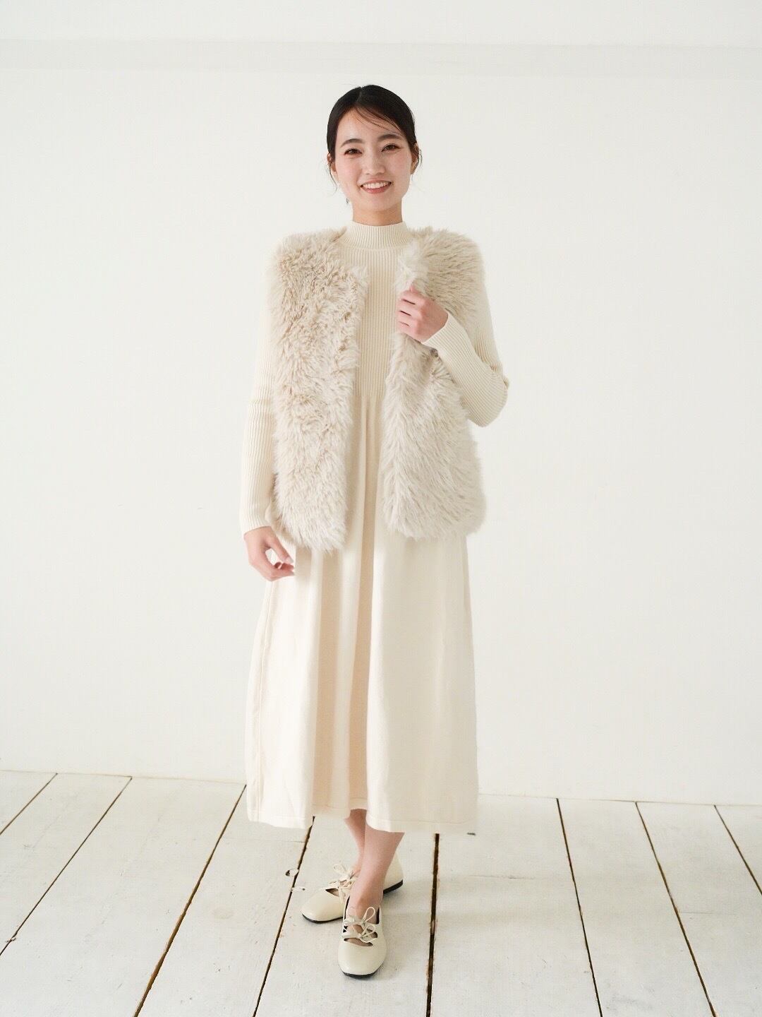 ファーベストやジャケットなどと合わせるのもこなれ感がでてオススメです。低身長さんでも安心して着て頂ける少し短めのワンピースです。