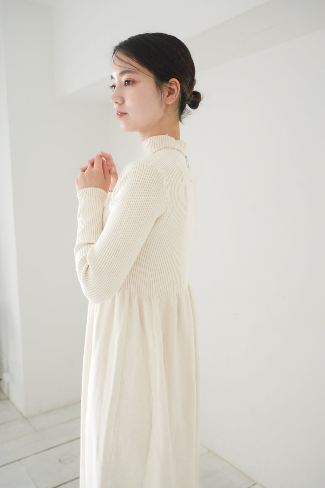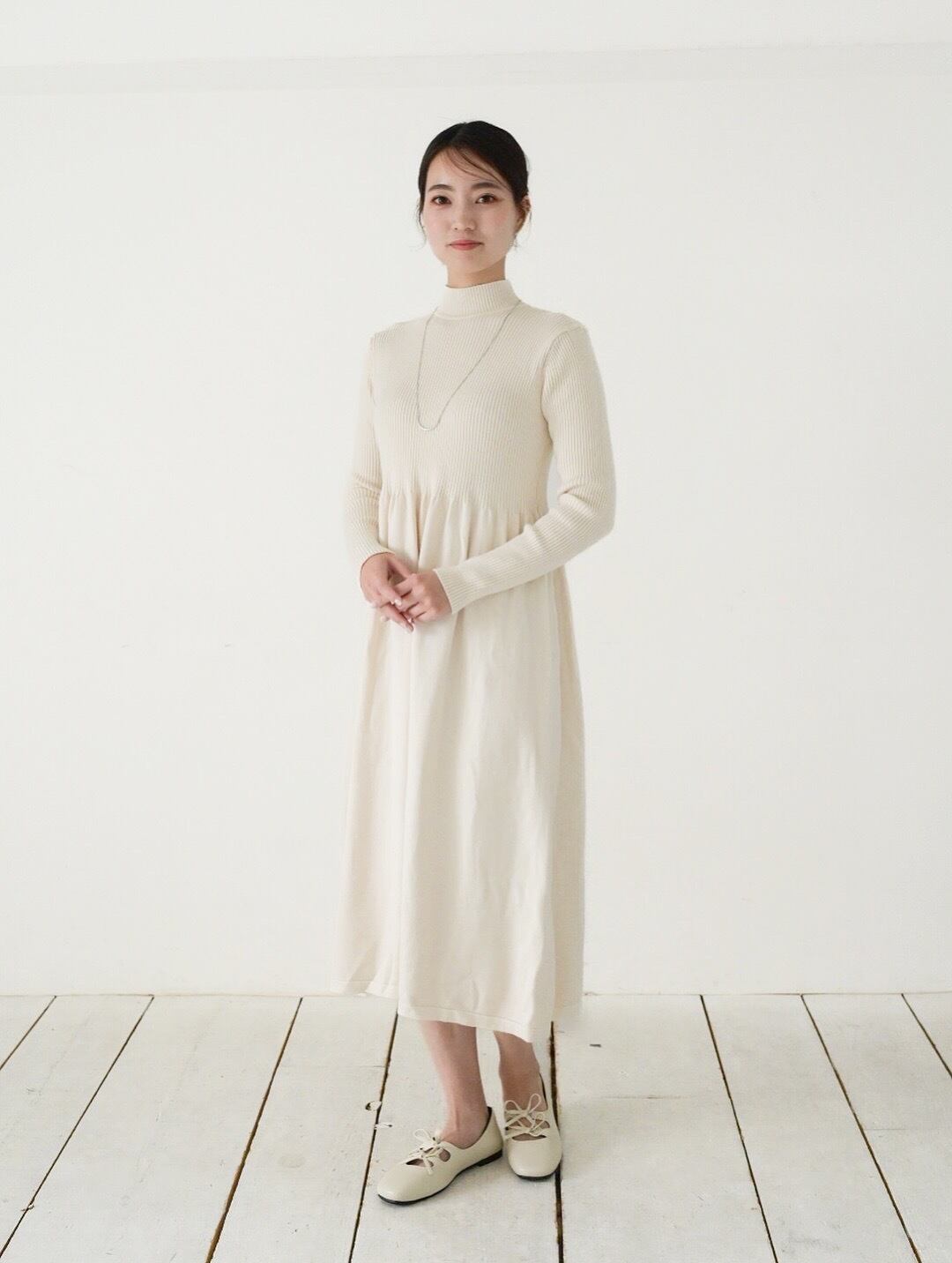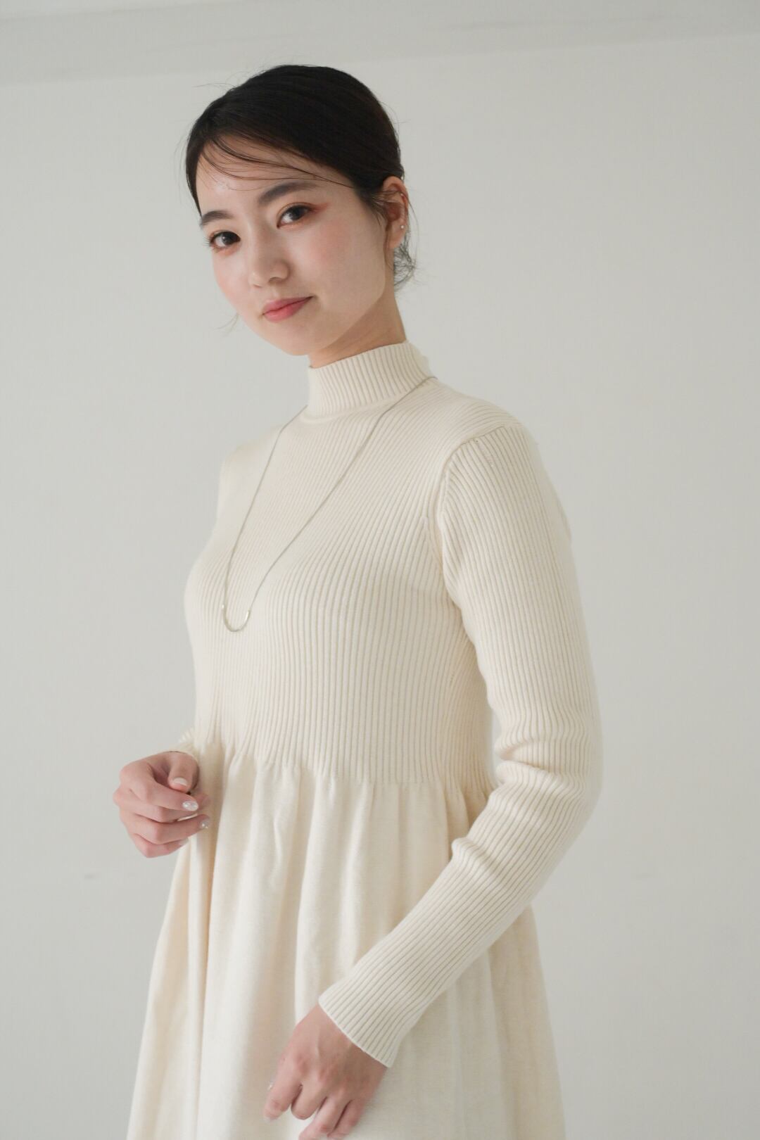 ウエスト周りにリブの切り替えがありニットワンピースでも膨張せずスタイルアップを狙えます◎