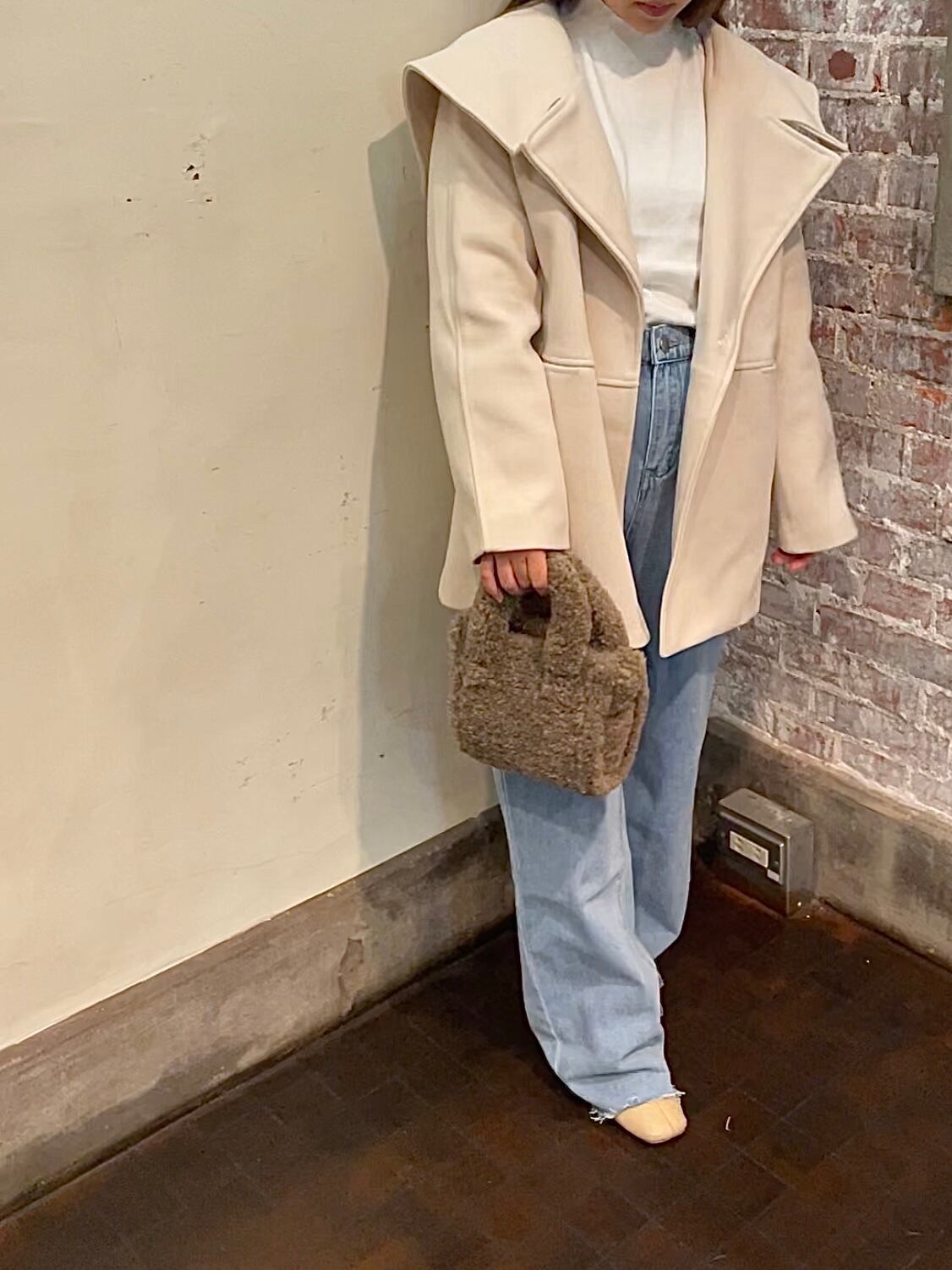 ボア生地でウォーム感のあるバッグに。 折り財布もしっかり入る実用的なサイズで、ショルダーバッグとしてもお使い頂けます◎
